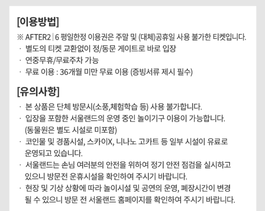 - 임산부·심혈관 질환자 일부 어트랙션 탑승 주의