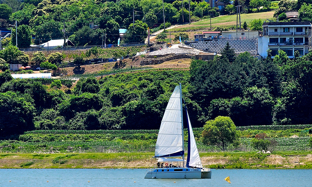 드넓은 빙어호(氷魚湖)의 푸른 물빛과 산자락이 만들어내는 빼어난 풍광 아래