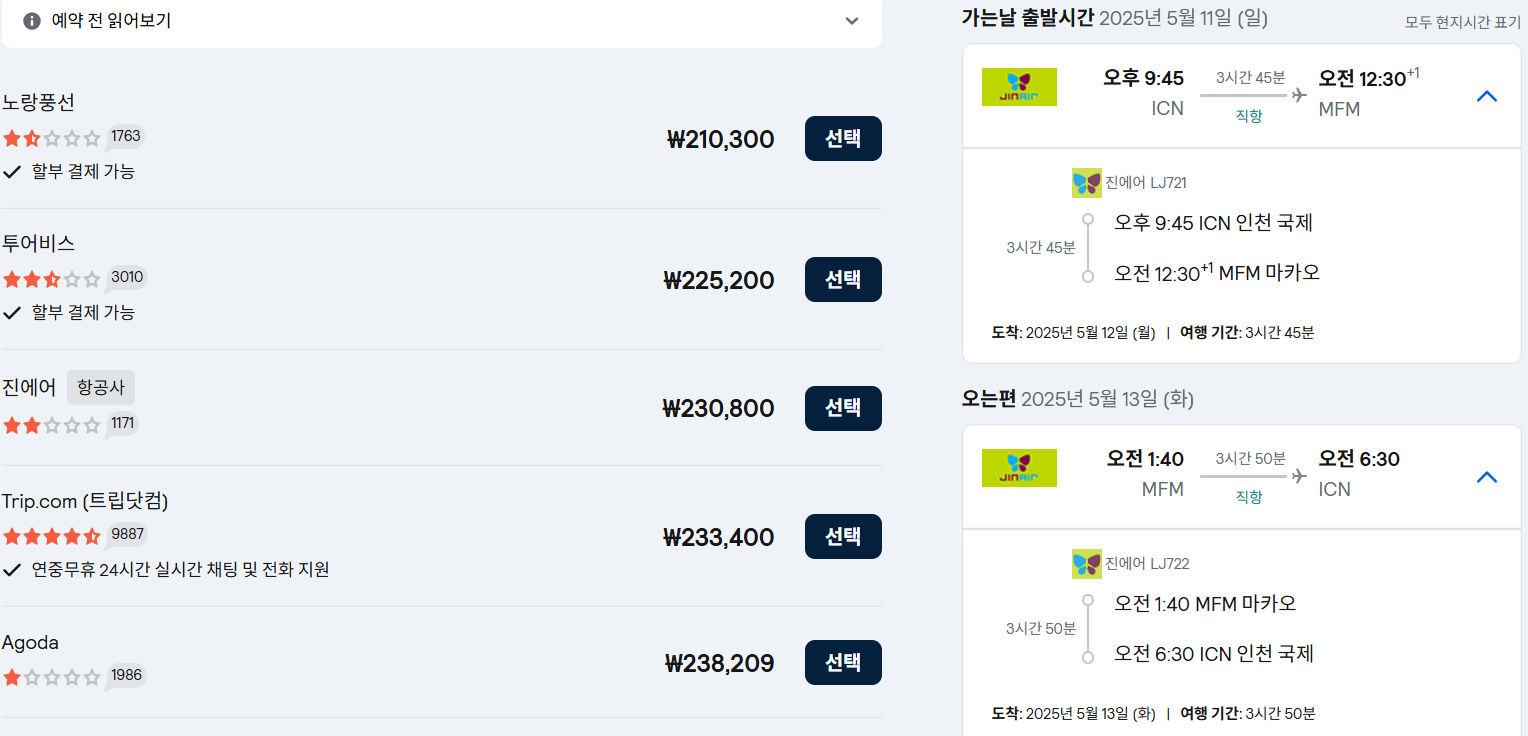 💲 21만원대 왕복 특가, 마카오 직항 중 매우 저렴한 가격