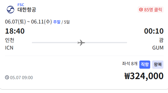 대한항공 직항으로 괌(GUAM) 왕복이 단 ₩324,000부터 가능!