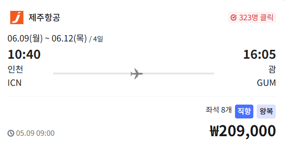 👉 6월 둘째 주에 저렴하게 괌을