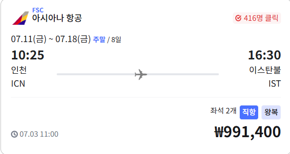 - 노선: 인천(ICN) → 이스탄불(IST)