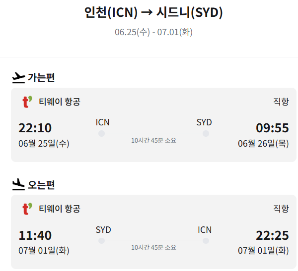 티웨이항공 인천→시드니 6월 말 왕복 항공권 특가 공개🔥