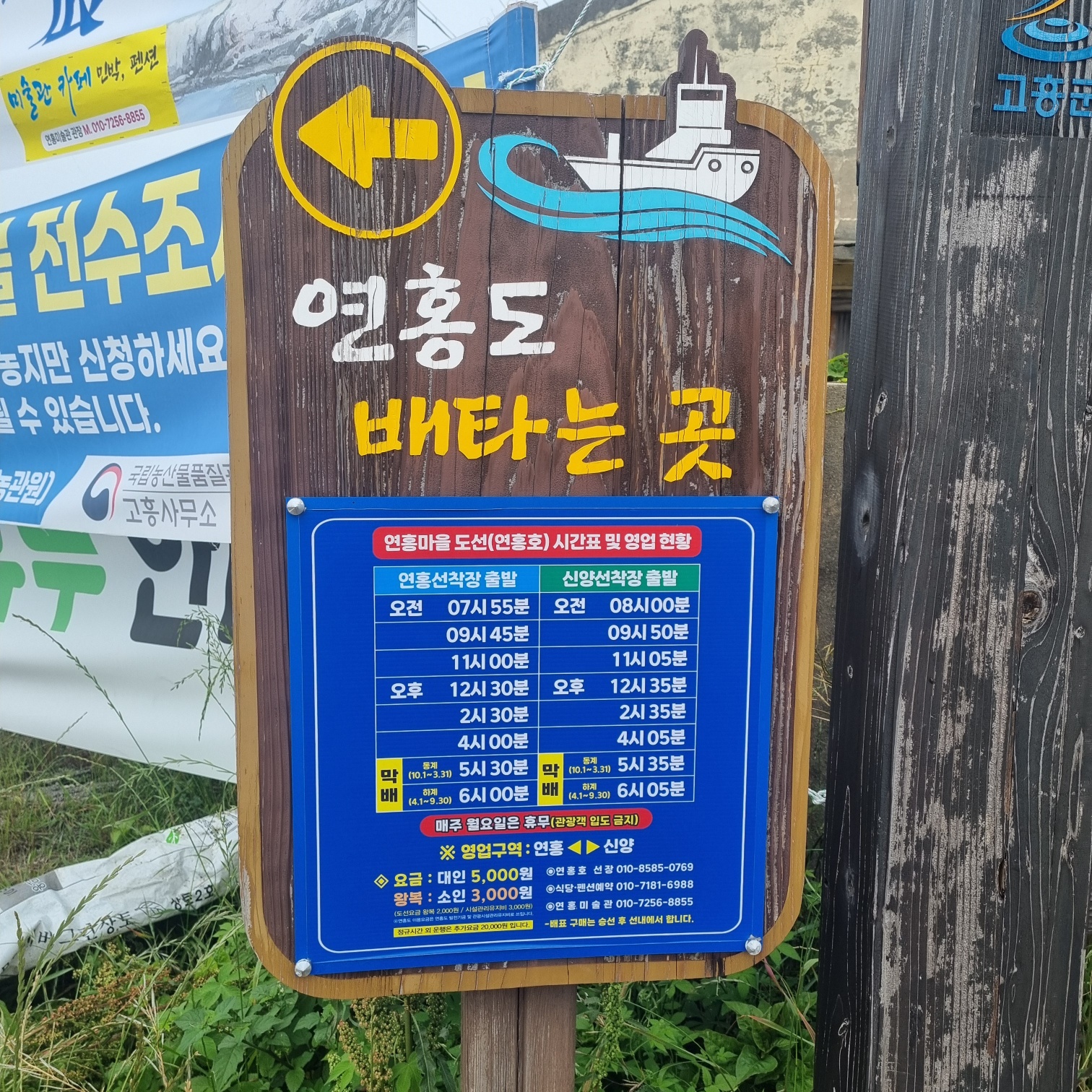 배편은 연홍 <-> 신양 구간을 오가며, 배표 구매는 매표소는 없고 배 안에서 이루어지는 시스템이었어요.