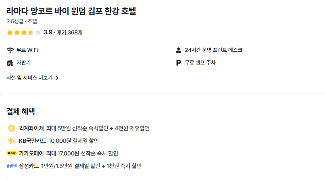 ⬆️라마다 앙코르 바이 윈덤 김포 한강호텔 결제 혜택⬆️