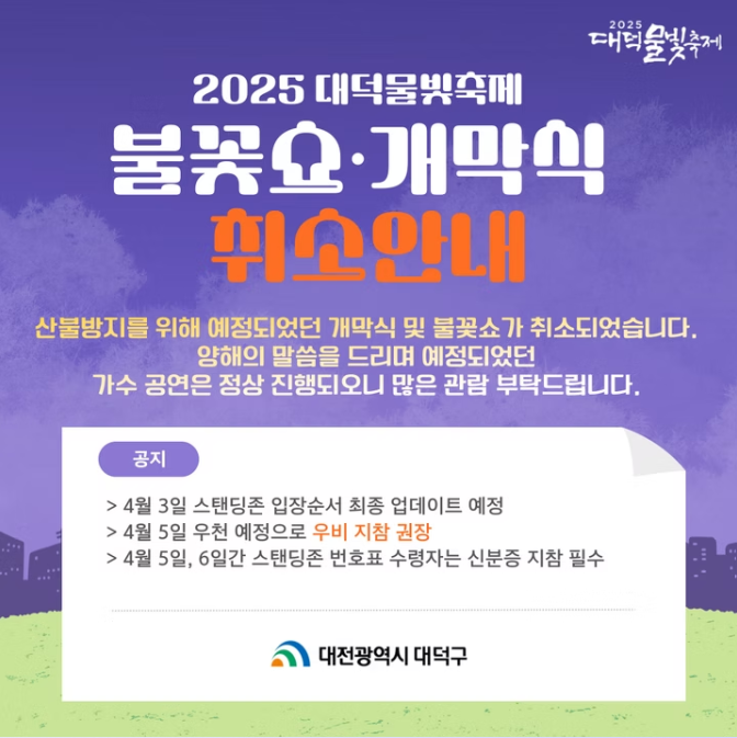 다가오는 2025년 3월 28일부터 4월 26일까지 대전 대덕구에서 열리는 "대덕물빛축제"를 주목하세요! 💙