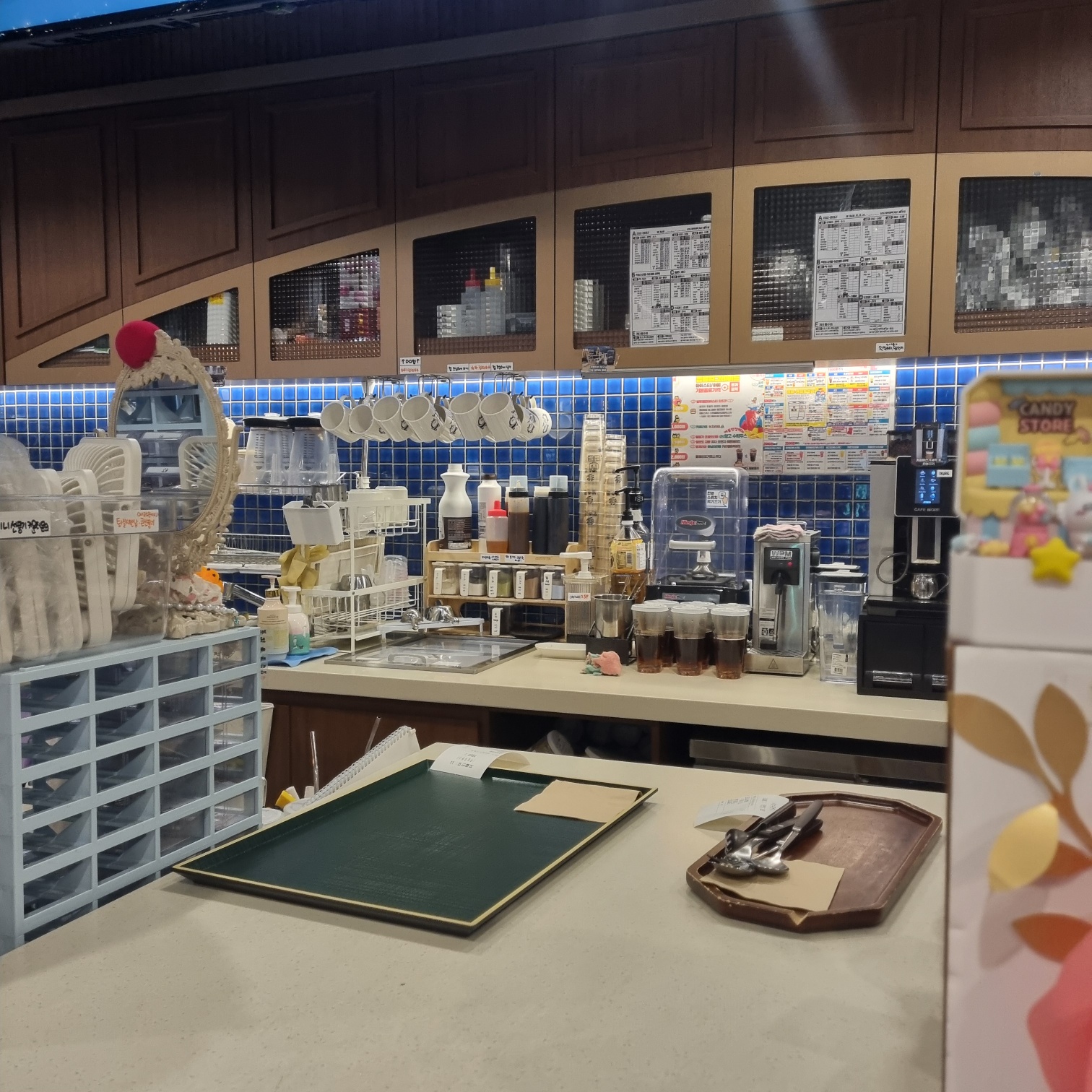 - 정면에 큼직한 메뉴판이 보이는 카운터가 반겨줌