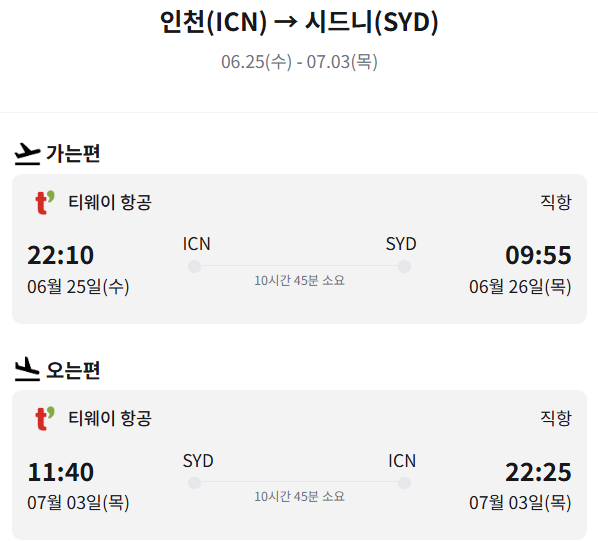 | 🛫인천↔시드니 직항 74만원대! 티웨이항공 특가 소식 (1) | 2025.05.28 |