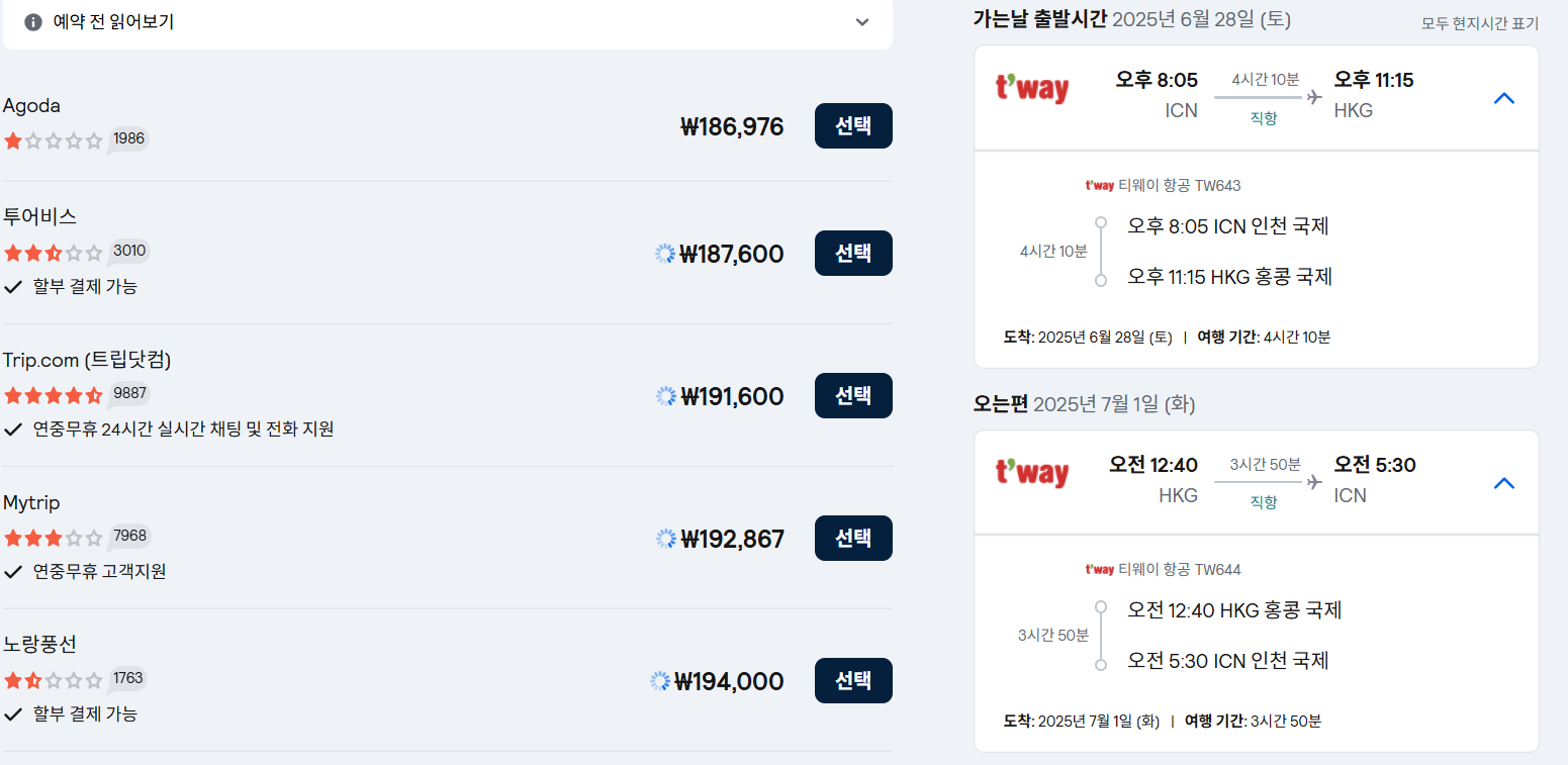 출국: 6월 28일(토) 오후 8:05 인천(ICN) ✈ 오후 11:15 홍콩(HKG)
