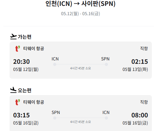 티웨이항공 인천(ICN) → 사이판(SPN) 직항