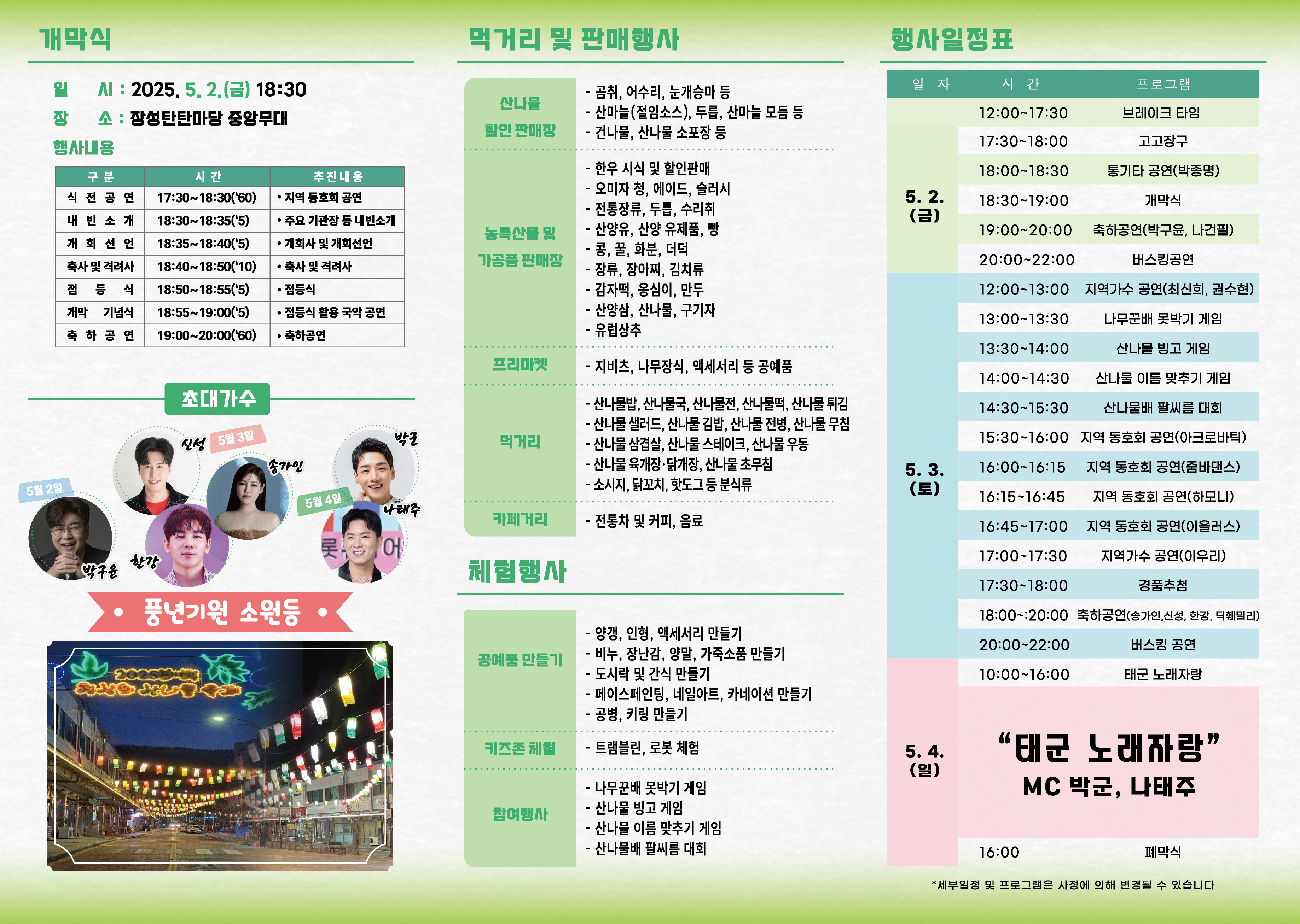 - 📷 포토존: 산나물 조형물, LED 거리 포토존 다수