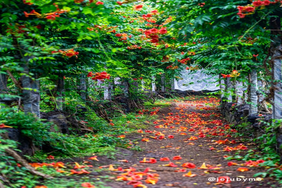 꽃이 흐드러지게 피는 계절, 제주에서 만나는 주홍빛 꽃비의 절경.