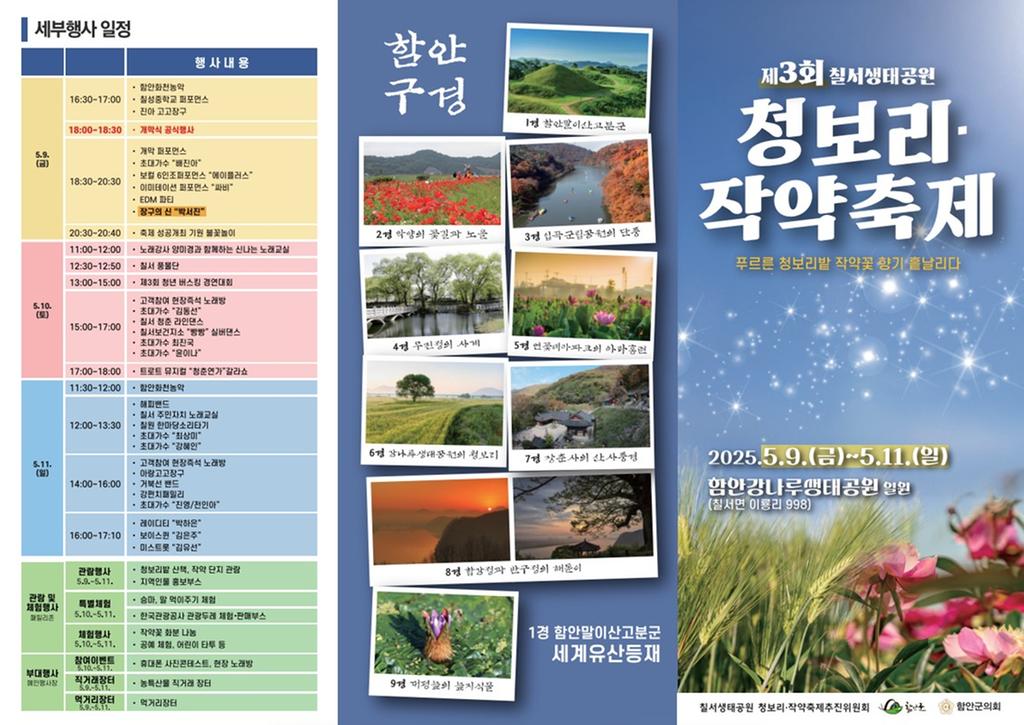 - 행사명: 제3회 칠서생태공원 청보리·작약축제