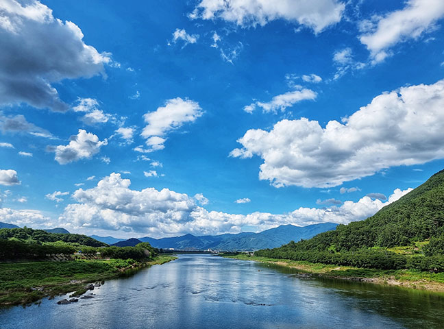 중간에 작은 문척교에 서서 유유히 흐르는