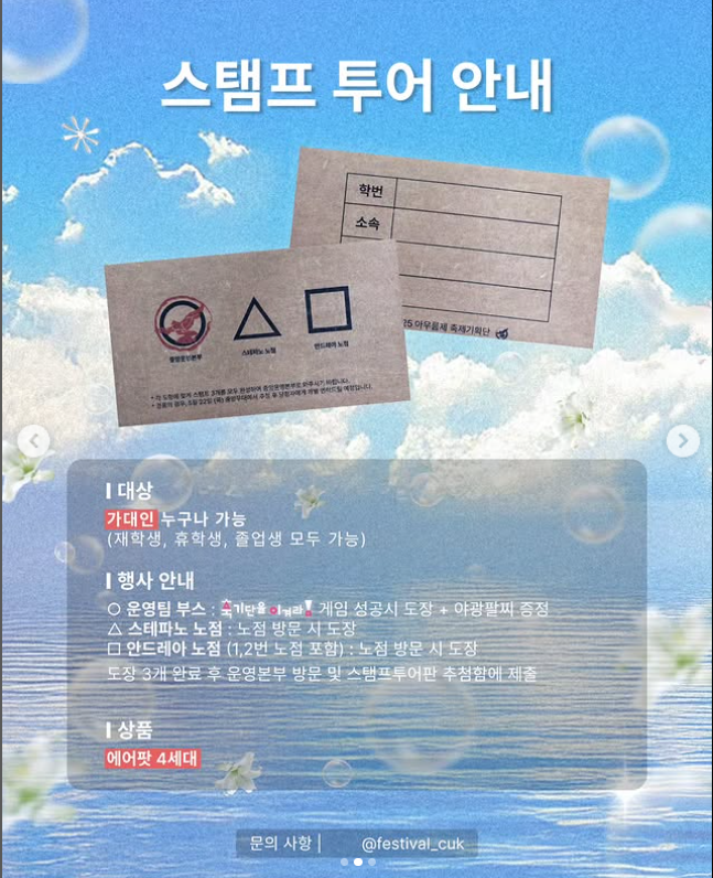 | 🌸 설레는 봄밤의 영화제, 경기대학교 2025 봄축제 ‘썸, 내일’ 총정리! 🎬🌷 (0) | 2025.05.19 |