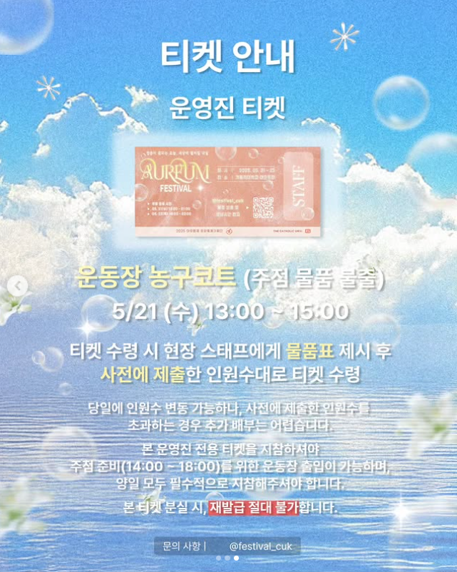 주의사항: 티켓 지참 시에만 운동장 출입 및 주점 준비 가능