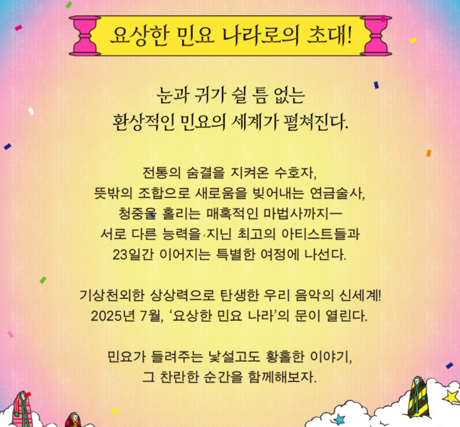 - 🎇 폐막작: 8도9룹 – 「팔도민요대전」 (7/26)