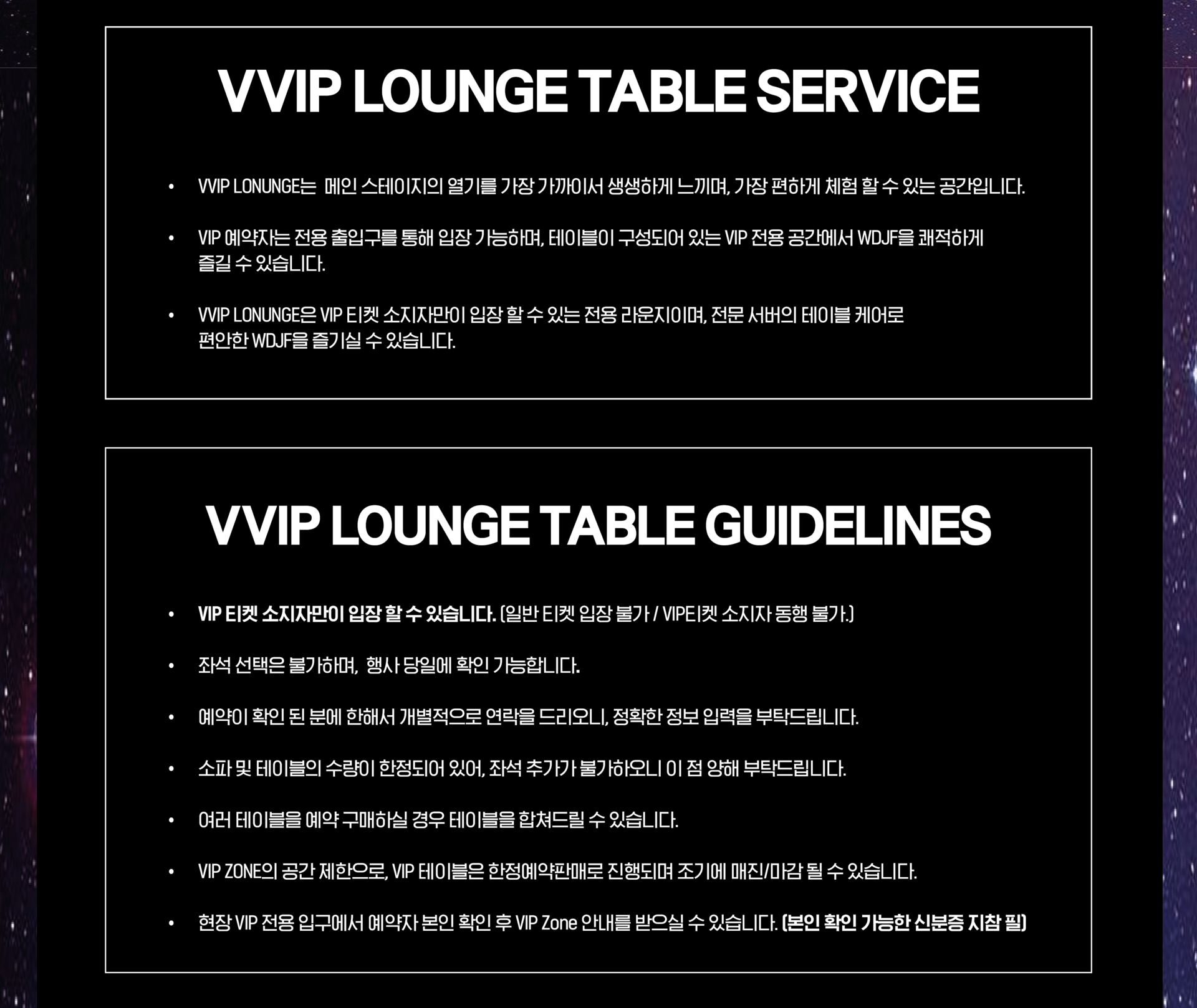 - 메인 스테이지 바로 앞, 전용 입장구역에서 즐기는 특권