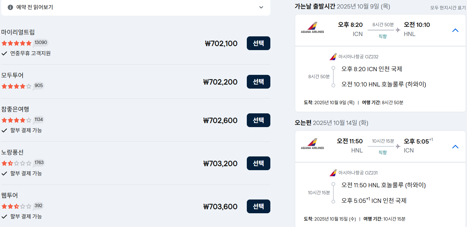 👉 아시아나 직항으로 이 정도면 꽤 합리적인 가격입니다.