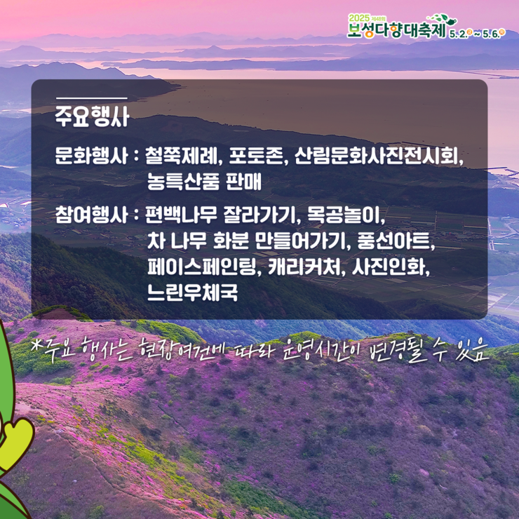 대중교통: 보성터미널 하차 후 셔틀버스(운영 시 확인 필요)