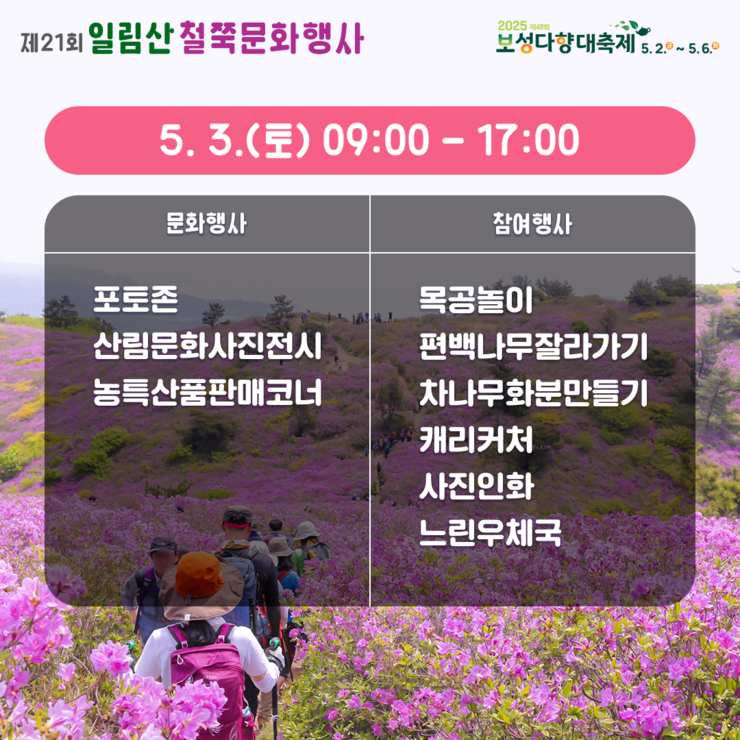 지리산 운봉 바래봉 철쭉제2025년 4월 26일부터 5월 25일까지,한 달간 펼쳐지는 이 장관 속에서 자연과 어우러진 축제를 즐겨보세요.📍축제 개요행사명 : 제29회 지리산 운봉 바래봉 철쭉제행사기