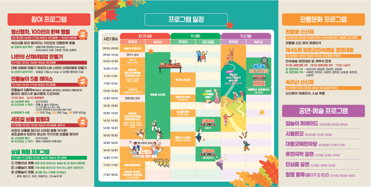 **축제 기간:** 2025년 10월 31일(금) ~ 11월 2일(일), 3일간