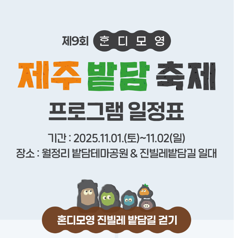 제주 자연·농업유산의 대표인 ‘밭담’을 중심으로, 제주만의 독특한 경관과 돌담길,가족과 지역민이 함께 즐기는 오감만족 체험·문화축제!