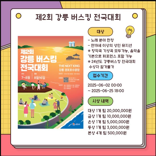 “2025 강릉버스킹 전국대회” 참가자를 다음과 같이 모집하니,
