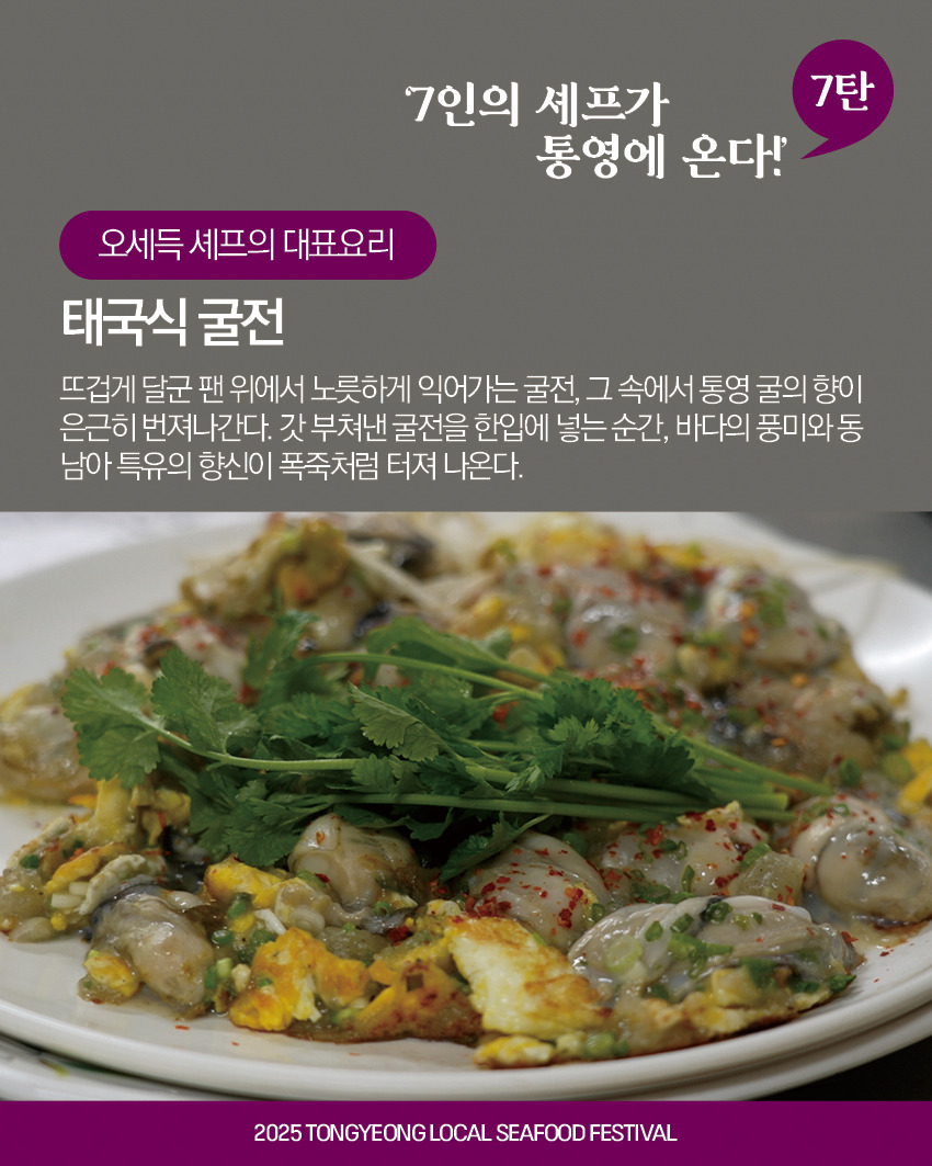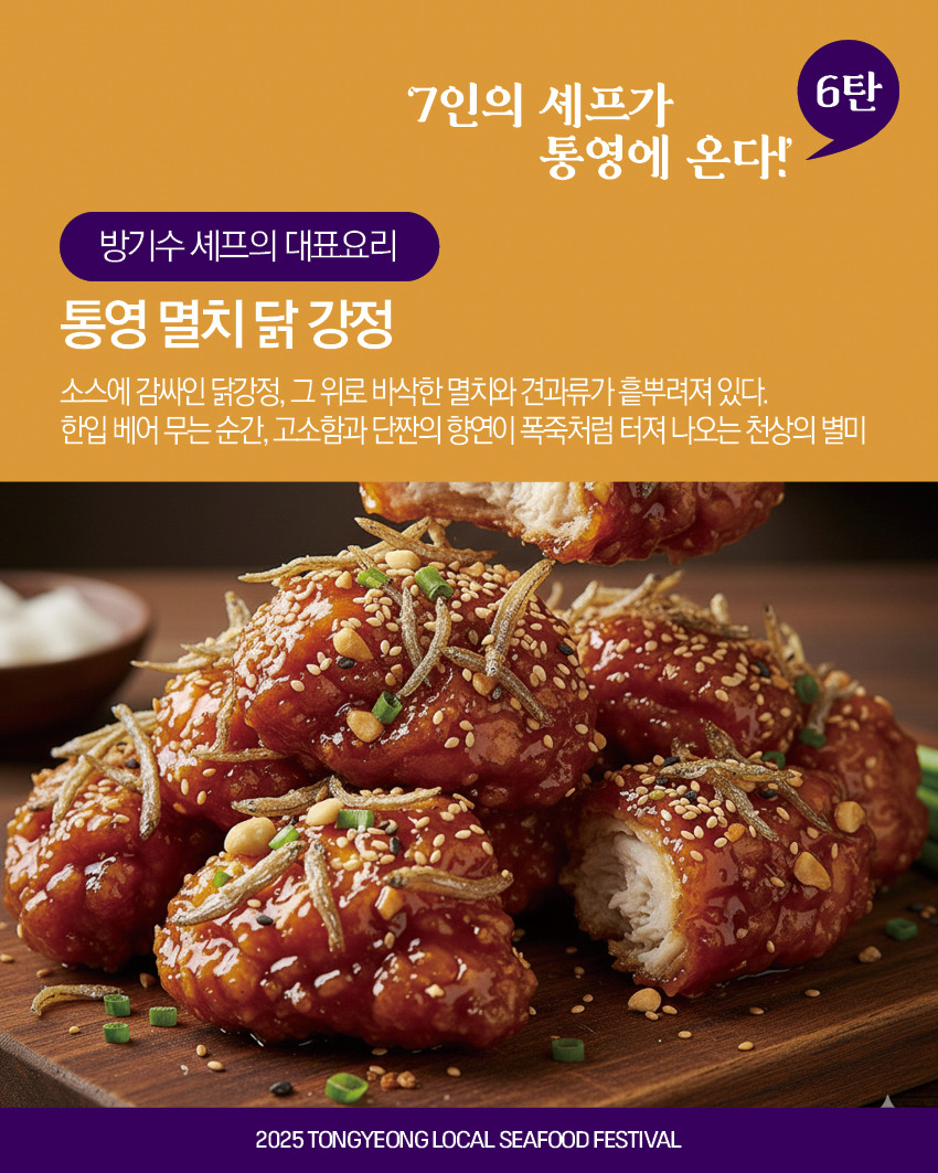 - 탑 셰프 7인 라이브 쿠킹쇼 (통영 굴·멍게·멸치 등 창작 요리 시식)