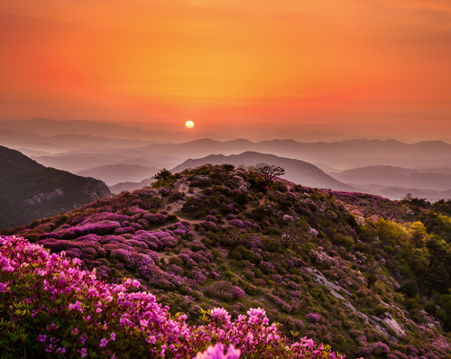 한반도 자생종 '산철쭉'으로 핑크빛 융단 같은 절경