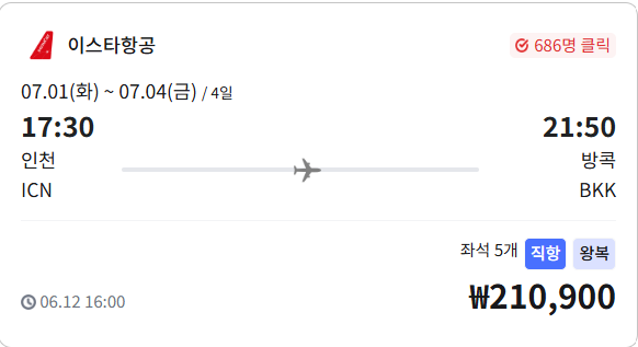 - 노선: 인천(ICN) ↔ 방콕(BKK)